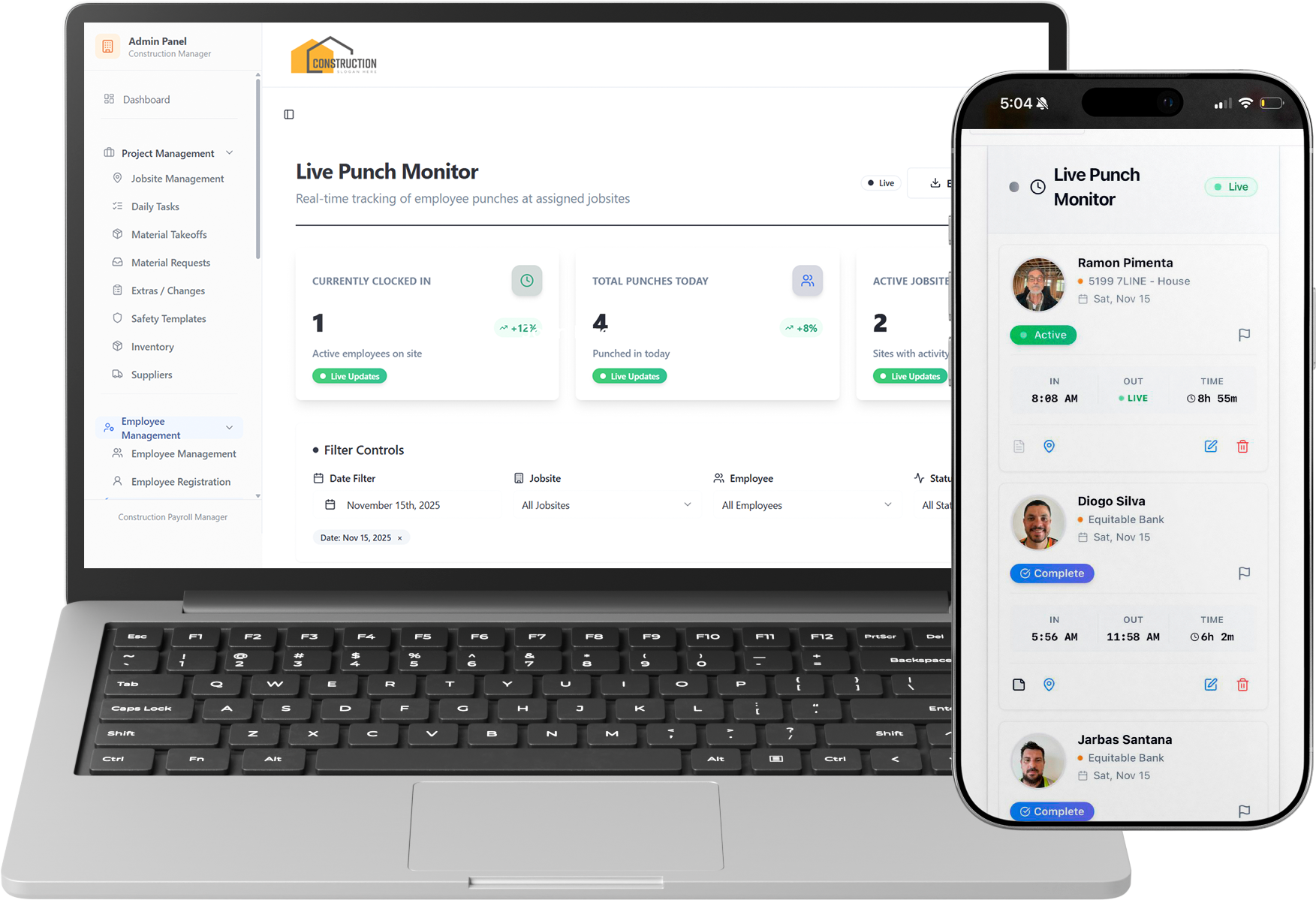 Manage everything from jobsite activity to invoices, materials, and supplier orders — all in one powerful platform. Designed to simplify construction workflows and give you full control from the office to the field.